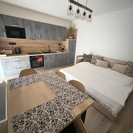 公寓有厨房,宾客可在那里自己做饭。 距离公寓附近的Tuchomerice, Ke Kopanine汽车站的距离为650米。